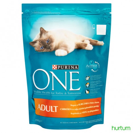 • Purina ONE Adult Karma dla kotów bogata w kurczaka z pełnymi ziarnami 450 g