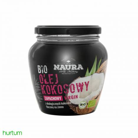 Olej nie został poddany rafinacji, dzięki czemu charakteryzuje się delikatnym, kokosowym zapachem oraz wysoką wartością odżywczą.