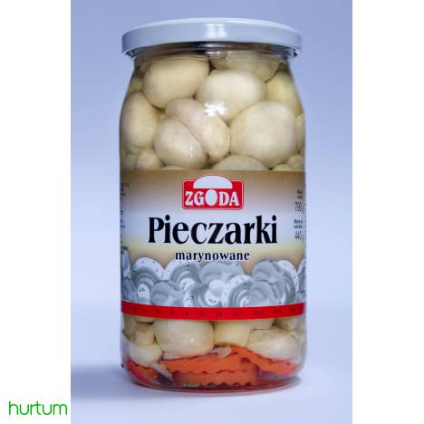 Pieczarki marynowane w tradycyjnej octowej zalewie z dodatkiem marchwi i cebuli.Polecane jako zakąska, dodatek do mięs, wędlin, sałatek i sosów. Produkowane z polskiego surowca.