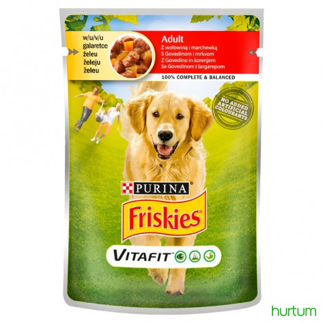 Mokra karma dla psów Purina Friskies Adult VitaFit Saszetka 100 g z wołowiną i marchewką w galaretce.