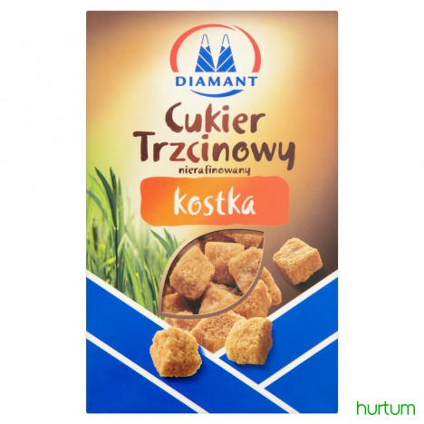 Cukier trzcinowy Diamant w kostce to grube, nieregularne, duże, doskonałe do słodzenia kawy, herbaty i kakao kostki. Świetnie nadają się również jako egzotyczny dodatek do gorących napojów z alkoholem: ponczu, grzanego wina i grogu. Zawarta w nich melasa nadaje napojom łagodny karmelowy smak i przyjemny zapach.