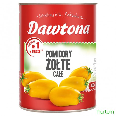 Pomidory żółte całe bez skórki w soku pomidorowym. Produkt pasteryzowany.