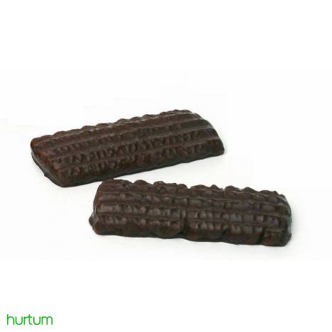 Kruche ciasteczko maślane oblane polewą czekoladową.