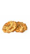 Kruche, okrągłe ciastko, posypane na wierzchu rodzynkami oraz ziarnami słonecznika, sezamu, dyni, orzecha.