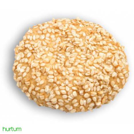 Kruche, okrągłe ciasteczko posypane ziarnami sezamu.