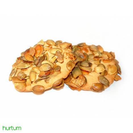 Kruche ciasteczko posypane ziarnami dyni.