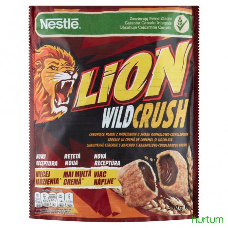 • Nestlé Lion WildCrush Chrupiące płatki z nadzieniem o smaku karmelowo-czekoladowym 150 g