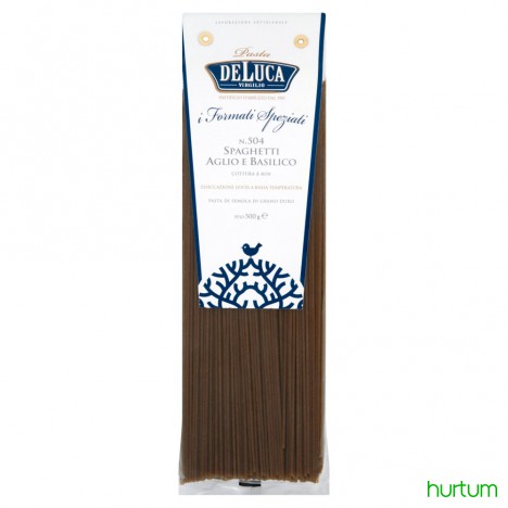 Wysokiej jakości makaron z pszenicy durum z dodatkiem bazylii i czosnku.