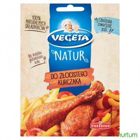 1. Vegetę Natur do złocistego kurczaka dodać do oliwy i wymieszać. Natrzeć kurczaka i odstawić w chłodne miejsce, najlepiej na parę godzin.