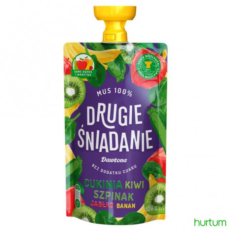 65% jabłek + 15% cukinii + 10% bananów + 5% szpinaku + 5% kiwi = 100% musu