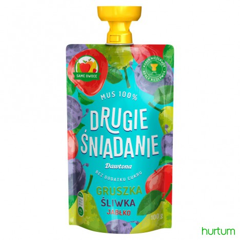 50% jabłek + 27% gruszek + 23% śliwek = 100% musu