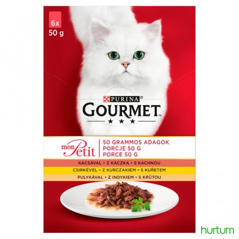 Prawdziwy koci koneser ceni sobie różnorodność smaków, specjalnie dla niego stworzyliśmy Kolekcję Drobiowych Filecików Gourmet Mon Petit zawierającą dania z kaczki, kurczaka lub indyka w aksamitnym sosie. Gourmet Mon Petit to gama wyśmienitych dań specjalnie przygotowanych w porcjach 50 g, abyś mógł rozpieszczać go nowym smakiem przy każdym posiłku. Gourmet Mon Petit to więcej przyjemności i szersza gama smaków dla rozkoszy jego wyrafinowanego podniebienia. Jak mógłbyś go nie rozpieszczać?