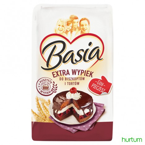 Mąka Basia Extra Wypiek to mąka dedykowana do pieczenia najbardziej wymagających ciast tortowych i biszkoptów. Proces perfekcyjnego mielenia ziaren pszenicy czyni ją wyjątkowo aksamitną i delikatną, co zapewnia wypiekom puszystość oraz lekkość. Mąka Basia Extra Wypiek idealnie sprawdzi się do ciast na najważniejsze, rodzinne wydarzenia. Doceń jej wyjątkowe walory i twórz idealne puszyste domowe torty i biszkopty celebrując ze swoimi bliskimi najcenniejsze, wspólne chwile.