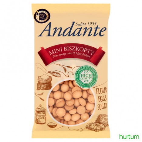 | Składniki na 100 g produktu gotowego: mąka pszenna 59 g, jaja 44 g, cukier 37 g |