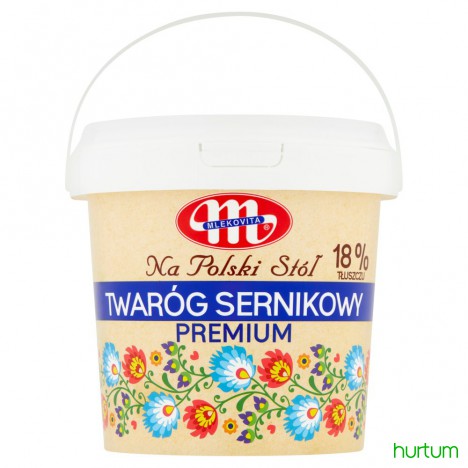 Serek śmietankowo-twarogowy do serników, zawartość tłuszczu 18%. Produkt termizowany.