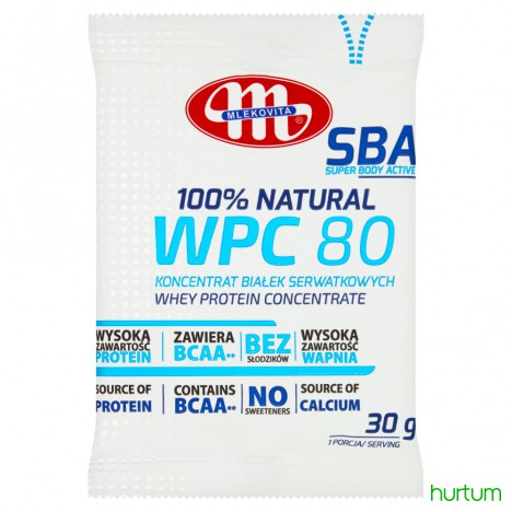 Białko odgrywa bardzo ważną rolę zarówno w diecie osób profesjonalnie uprawiających sport, jak i amatorów, osób aktywnych i dbających o zdrowy styl życia. Wychodząc naprzeciw ich oczekiwaniom i potrzebom, MLEKOVITA wzbogaciła swoją ofertę o koncentrat białek serwatkowych WPC 80 Super Body Active w nowej, jednorazowej porcji 30 g. To najwyższej jakości w 100% naturalny, czysty koncentrat białka serwatkowego. Nie zawiera słodzików. To bogate źródło pełnowartościowych białek (w tym aminokwasów BCAA), które m.in. przyczyniają się do wzrostu i utrzymania masy mięśniowej, oraz wapnia niezbędnego dla mocnych kości i zdrowych zębów.