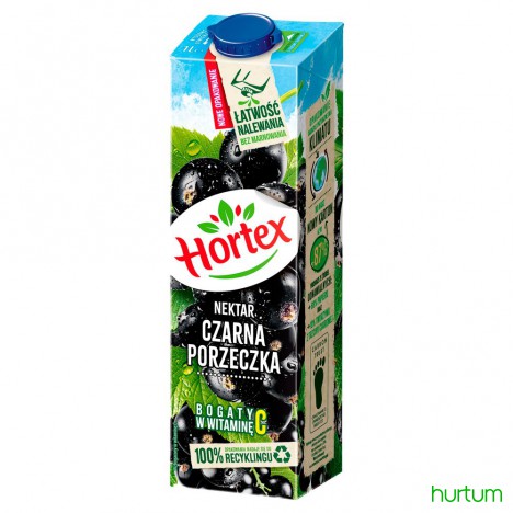Z czarnych porzeczek nektar. Z soku zagęszczonego. Wzbogacony w witaminę C. Zawiera cukier i substancję słodzącą. Pasteryzowany.