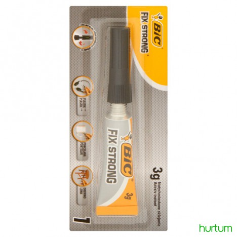 FIX STRONG 2-cyjanoakrylan etylu. UWAGA Cyjanoakrylany. Niebezpieczeństwo. Skleja skórę i powieki w ciągu kilku sekund. Chronić przed dziećmi. Działa drażniąco na oczy. Może powodować podrażnienie dróg oddechowych. Działa drażniąco na skórę. W PRZYPADKU KONTAKTU ZE SKÓRĄ: Umyć dużą ilością wody. W przypadku wystąpienia podrażnienia skóry: Zasięgnąć porady/zgłosić się pod opiekę lekarza. W PRZYPADKU DOSTANIA SIĘ DO OCZU: Ostrożnie płukać wodą przez kilka minut. Wyjąć soczewki kontaktowe, jeżeli są i można je łatwo usunąć. Nadal płukać. W przypadku utrzymywania się działania drażniącego na oczy: Zasięgnąć porady/zgłosić się pod opiekę lekarza. Unikać wdychania par cieczy.