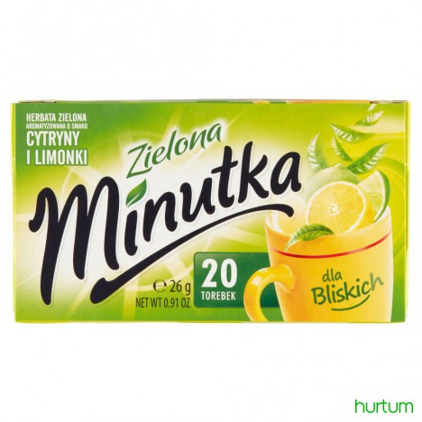 Herbata zielona aromatyzowana o smaku cytryny i limonki w torebkach do zaparzania.