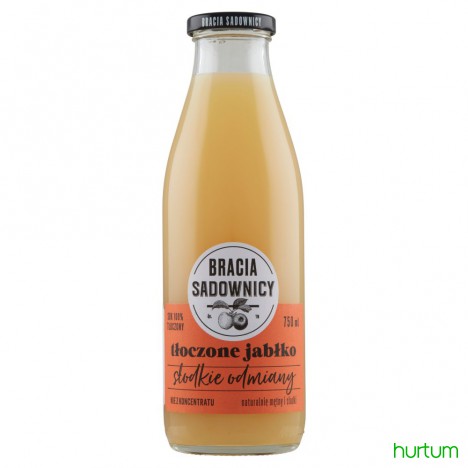 Sok jabłkowy, tłoczony z całych owoców. Wzbogacony w witaminę C. Pasteryzowany. Nie z koncentratu.