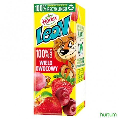 Wyjątkowa kompozycja 100 % soków z najpopularniejszych polskich owoców ozdobiona znaną i lubianą postacią Leona.