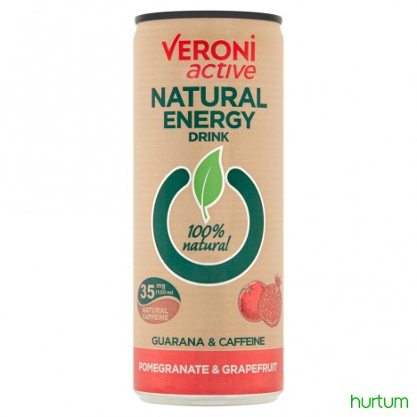 Napój gazowany energetyzujący o smaku granatu i grejpfruta z dodatkiem naturalnej kofeiny, pasteryzowany.