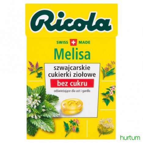 Melisa - szwajcarskie cukierki ziołowe bez cukru, zawiera substancje słodzące