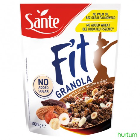 Fit Granola Orzechy - Kakao to połączenie opiekanych płatków zbożowych z chrupiącymi orzechami i kakao. To produkt: