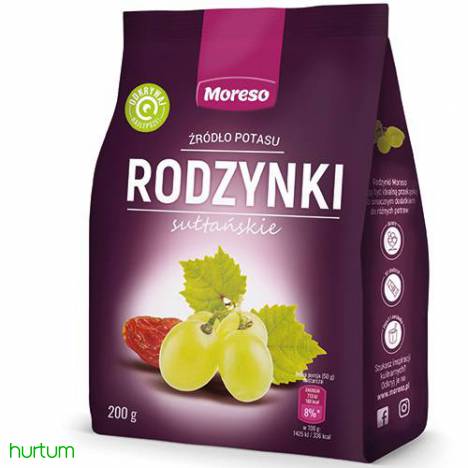 Skład: Rodzynki 99,3%, olej słonecznikowy, substancja konserwująca – dwutlenek siarki