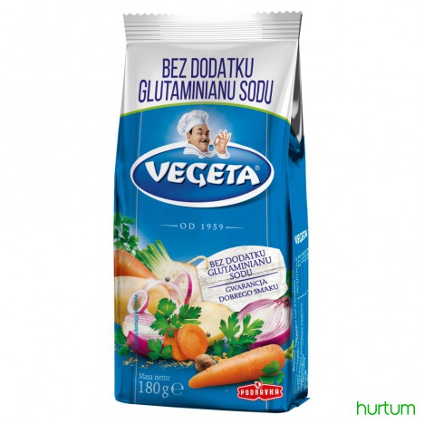 Sposób przyrządzania: Na jedną porcję (250 ml) gotowanej lub duszonej potrawy (zup, sosów, ryżu, warzyw i potraw mięsnych) dodać 1 łyżeczkę (3 g) Vegety na 5 minut przed końcem gotowania. Mięso lub potrawy rybne przed pieczeniem doprawić Vegetą według uznania.