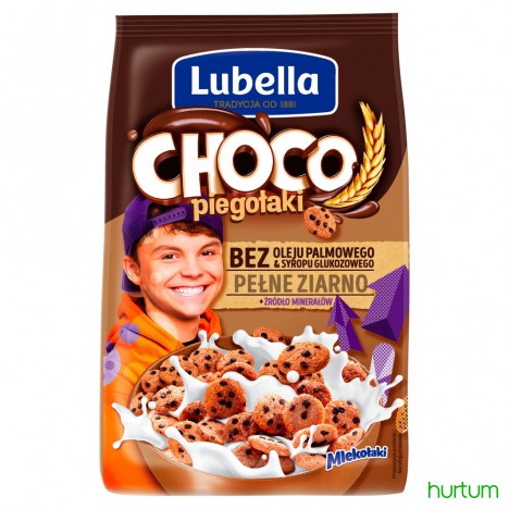 Zbożowe chrupki w kształcie ciasteczek o smaku czekoladowym.