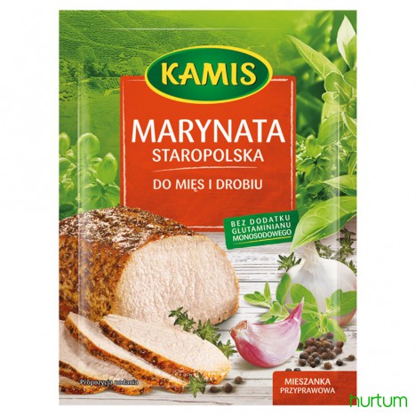 Marynatę polecamy również do pieczenia większych kawałków mięsa (ok. 1 kg). Należy wówczas zawartość torebki wymieszać z 7-8 łyżkami oleju. Otrzymaną marynatą posmaruj mięso, zawiń w folię do żywności i odstaw w chłodne miejsce na 12 godzin. Piecz w temperaturze 180°C przez 1-1,5 godziny (w zależności od rodzaju mięsa).