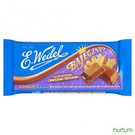 Czekolada mleczna z nadzieniem orzechowym z wafelkami i kawałkami orzechów arachidowych