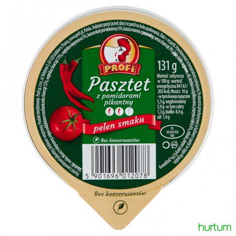 Pasztet z pomidorami pikantny, drobiowo-wieprzowy. Produkt sterylizowany.