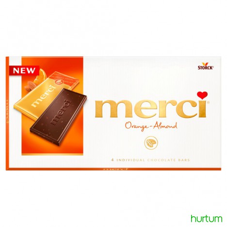 Czekolada z kawałkami migdałów (6%) i zagęszczonym sokiem pomarańczowym (2%).