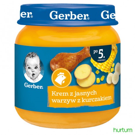 Krem z jasnych warzyw z kurczakiem. Produkt utrwalony termicznie, sterylizowany.