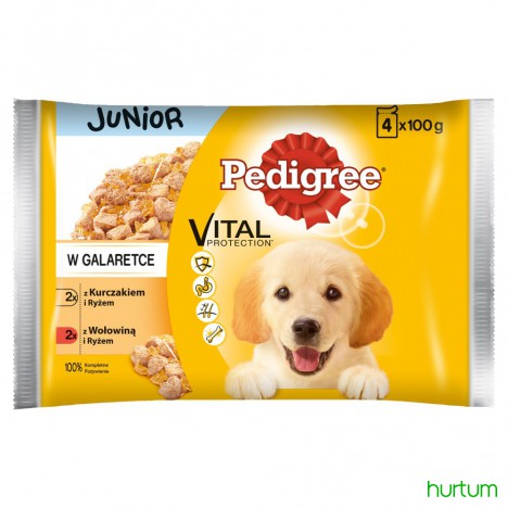 Zalecamy podawać zwierzęciu zarówno karmę pełnoporcjową Pedigree mokrą, jak i karmę pełnoporcjową Pedigree suchą.