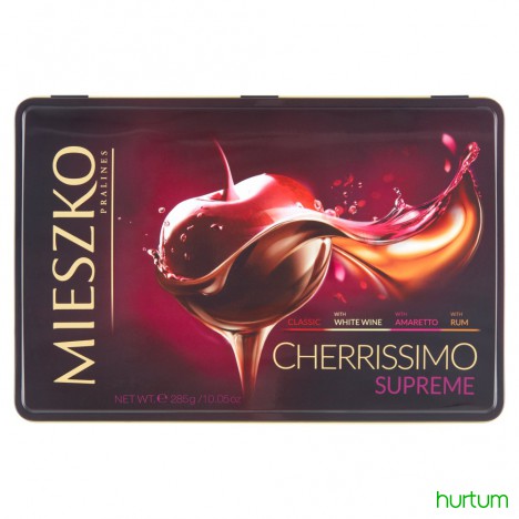 Praliny z wiśnią w alkoholu w czterech smakach: z dodatkiem białego wina, z dodatkiem rumu, z dodatkiem amaretto, z dodatkiem soku z wiśni.