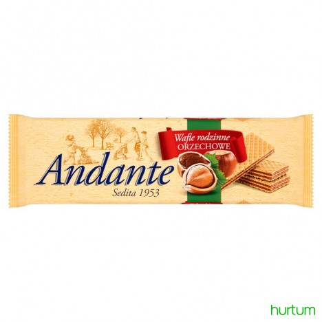 Wafelki z kremowym nadzieniem (75%) z orzechów laskowych.