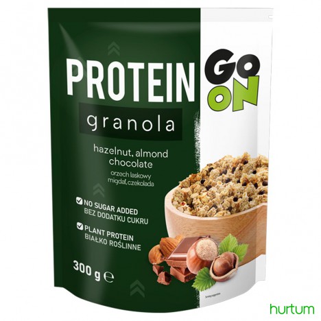 Granola Proteinowa. Płatki zbożowe z czekoladą i orzechami. Bez dodatku cukrów. Zawiera naturalnie występujące cukry. Zawiera, substancje słodzące.