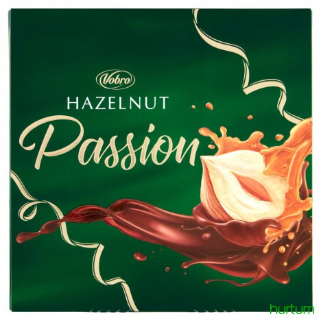 Praliny z mlecznej czekolady 50% nadziewane kremem orzechowym i z orzechem laskowym 5%.