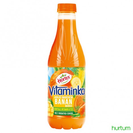Sok z jabłek, marchwi, bananów i mango. Wzbogacony witaminami C, E. Pasteryzowany. Przecierowy.
