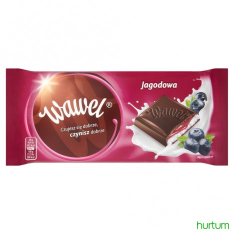 Czekolada z nadzieniem (48%) jagodowo-jogurtowym.