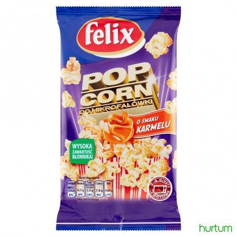 Popcorn o smaku karmelowym, do prażenia w kuchence mikrofalowej.