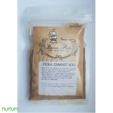 Skład: majeranek, czosnek, cebula, papryka słodka, bazylia, kolendra, pieprz czarny, lubczyk, imbir, gorczyca, kurkuma, kminek, oregano, tymianek, papryka chili, kozieradka
