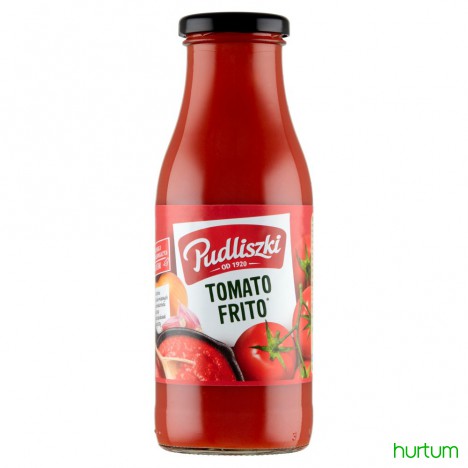 Tomato Frito to tradycyjny hiszpański przecierowy sos pomidorowy, który zaskoczy Cię aromatem smażonego czosnku i cebuli. Idealny do sosów, dań mięsnych, warzywnych, zapiekanek, zup oraz pizzy. Temperamentna kuchnia Hiszpanii zamknięta w szklanej butelce.