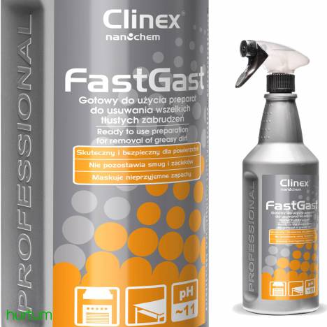 Środek do mycia tłustych zbrudzeń w kuchni do okapów blatów posadzek ścian CLINEX FastGast 1L