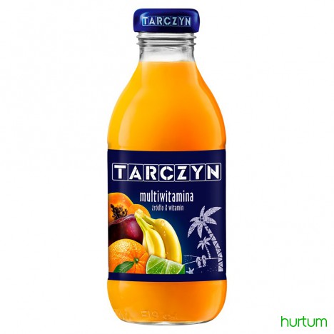 Sok wieloowocowo-marchwiowy 100% częściowo z zagęszczonych soków z witaminami. Pasteryzowany. Źródło witamin: A, C, B6, B12, niacyny, biotyny, kwasu foliowego i kwasu pantotenowego.