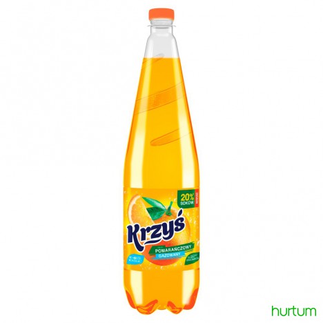 Krzyś napój gazowany o smaku pomarańczowym zawiera 20 % soków jest wytworzony na bazie naturalnej wody mineralnej, nie zawiera konserwantów.