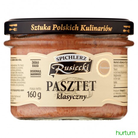 Pasztet wieprzowy z surowcem drobiowym z dodatkiem białka mleka, drobno rozdrobniony, sterylizowany.